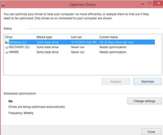 4. Asegúrese de Asegúrese de que la unidad C: está resaltada, haga clic en la esquina inferior derecha el botón de optimizar
