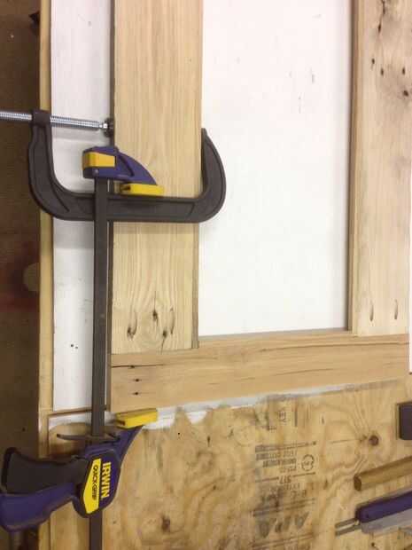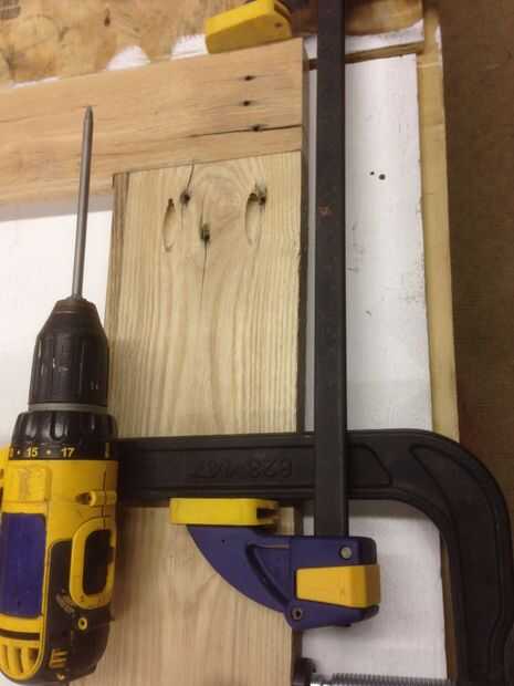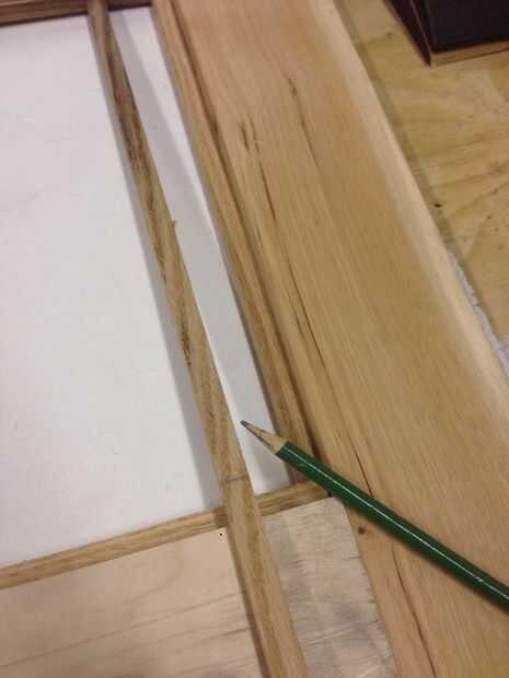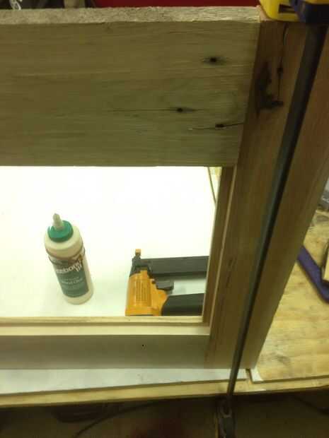 Es clave para asegurar las tablas correctamente cuadradas antes de empezar esto (yo sólo molido todos los lados hasta en estos tableros y estaba un poco torcida para los últimos agujeros). Cuando todos y pegamento ha curado porque fui un poco acerca de cómo agregar el interior del marco: alrededor de una barra cuadrada madera 1/2 pulgadas para soportar la madera superficial. Esencialmente cortar, pegamento y con cuidado de uñas!