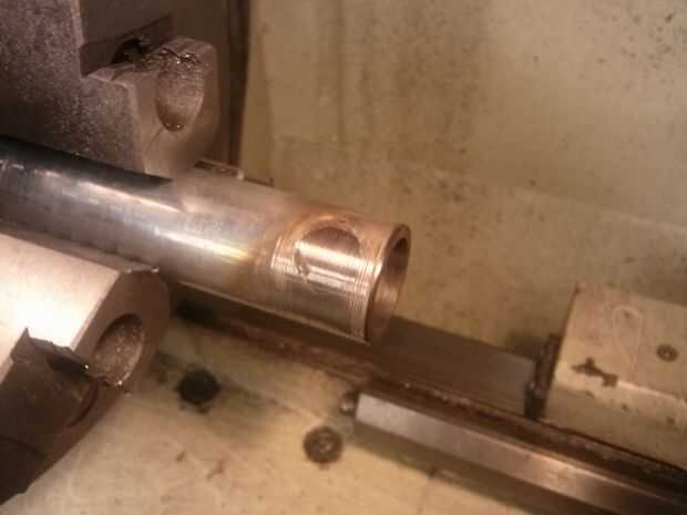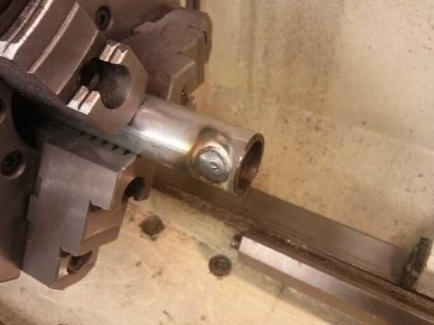 En el torno, máquina abajo cualquiera que sobresalen soldadura.