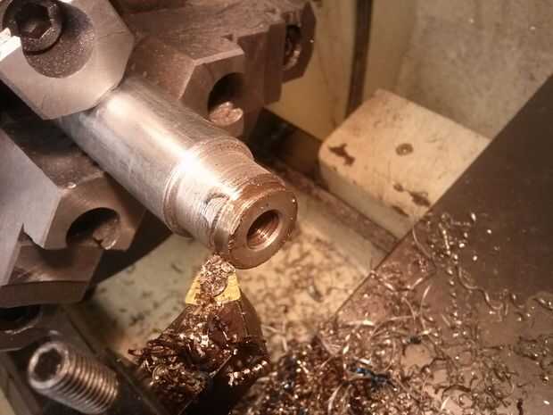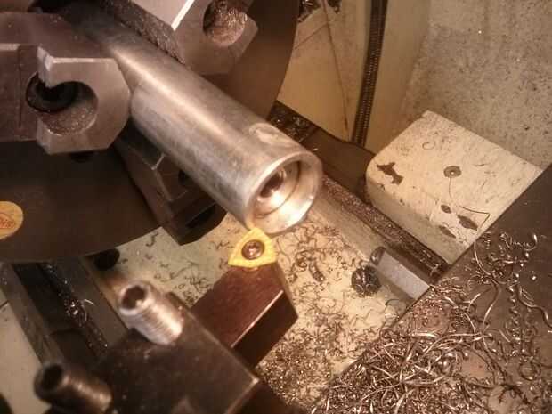 En el torno, cero su herramienta en el extremo del tubo de la horquilla.