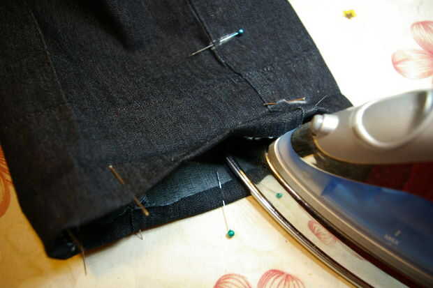 Presione el borde recién cortado bajo por el mismo importe que originalmente se utilizó en los pantalones antes de cortarlo lejos. En estos pantalones se trataba de una media pulgada.