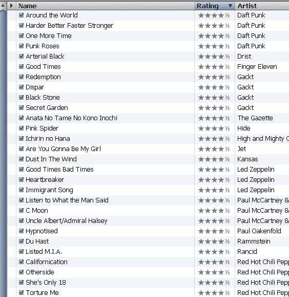 Lo único malo acerca de esto es que no puede ver las estrellas la mitad en tu ipod. Muestra como un número entero. Pero que, sin embargo, reconoce que 4,5 estrellas canciones son menos de 5 estrellas, lo que les hacen trabajar con las listas de reproducción inteligentes.
