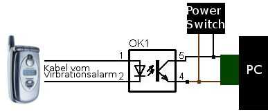 He intentado utilizar un transistor en primer lugar, pero resultó, que es manera más difícil que la resistencia es lo suficientemente grande como si el teléfono no suena, pero es lo suficientemente bajo como para encender la computadora si lo hace. Usé el fotosensor.