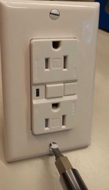 Para un aspecto acabado, Monte la placa de cara hacia el GFCI. Estos tornillos también se pintan a coincidir el conjunto, así que tenga cuidado de no dañarlos. Los tornillos deben ser sólo cómodo y no demasiado apretado.