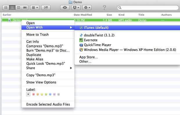 Click derecho (o el equivalente de la derecha haga clic según el ratón) para abrir un menú. continuación, seleccione Abrir con iTunes.