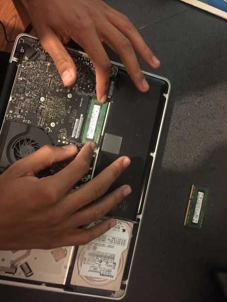 Al igual que el palillo superior de RAM, haces el mismo proceso para llevarlo a cabo. Este es un poco más complicado desde su más abajo en la ranura. Que era más fácil tirar sólo el gris pestillos hacia fuera un poco y luego poner mi dedo detrás de la palanca y levante y tire hacia fuera.
