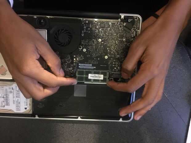 Servicio de Apple, una manzana original RAM para lo que importa, son bastante caros.Es realmente útil si usted puede hacer el cambio o actualización a sí mismo - y es fácil!!!!!!Sólo tenga cuidado si es la primera vez que lo haces, ser suave...Carner