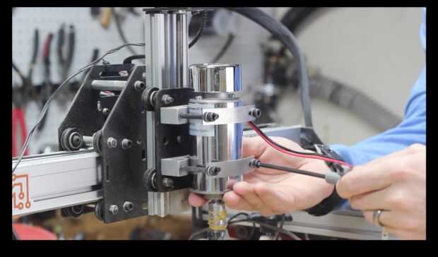 Aquí está todo conectado y funcionando. Monte el huso en el ShapeOko 2.