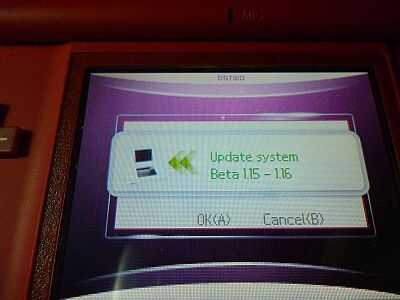 Paso 3: Poner el flashcart DStwo y la tarjeta SD en la consola DS Lite. Encendido, el DS Lite detectará automáticamente el firmware de actualización y verá "actualizar sistema Beta 1.15-1,16", luego simplemente elegir botón "A" para iniciar la actualización.