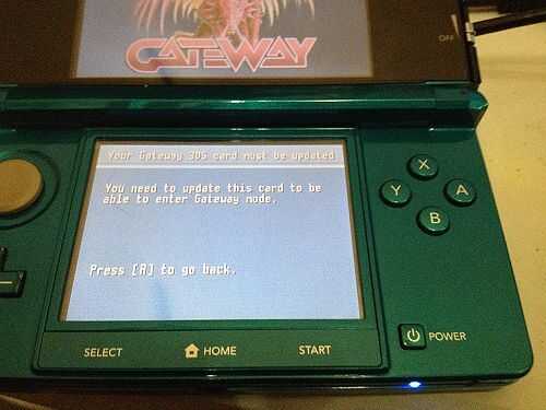 Si su tarjeta de 3ds no es el último, al hacer clic en el modo gateway, usted verá el golpe de los pasos para actualizar a la última