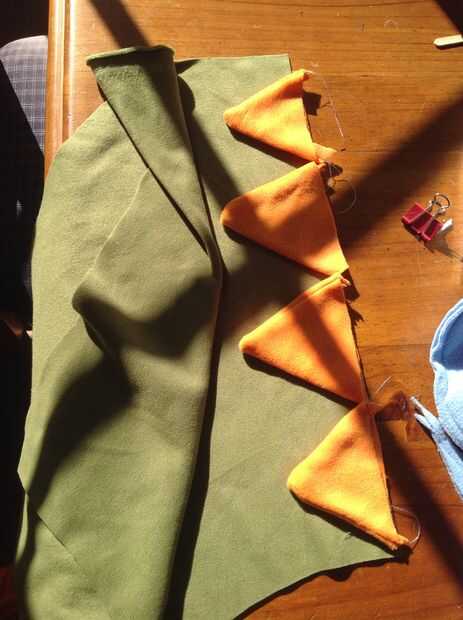 Coloque su costados encarando los derechos entre sí. Establecer los puntos de los triángulos. Lugar de forma segura en PIN. Coser a través de esta costura trasera, utilizando puntos de sutura posteriores a cada lado de los triángulos.