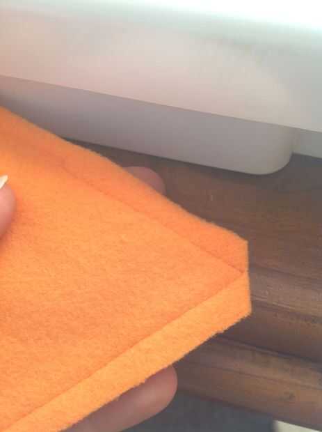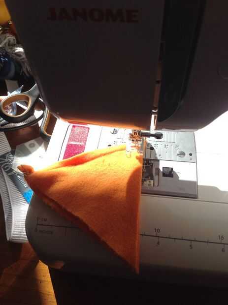 En la máquina, coser los 2 lados de cada triángulo. Corte la parte superior fuera del triángulo como se muestra y girar al revés.