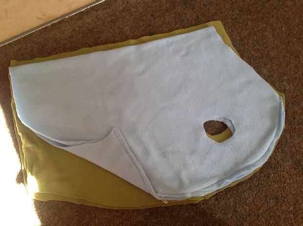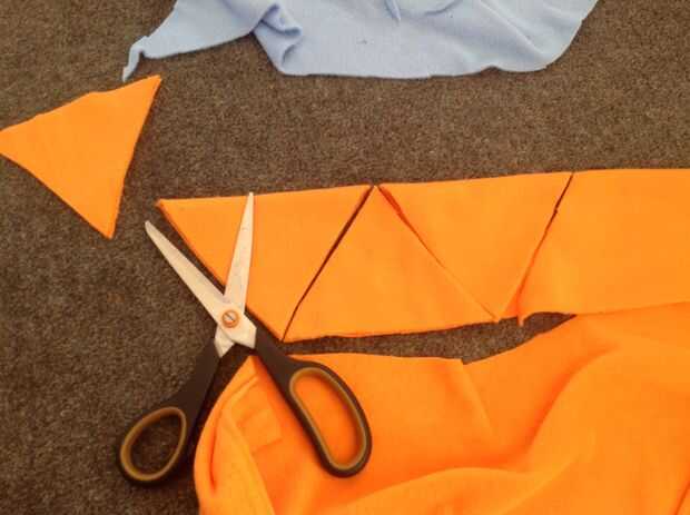 En una tela de contraste, cortar 4 triángulos, en duplicado en tela (debe tener 8 en total y 4 pares).