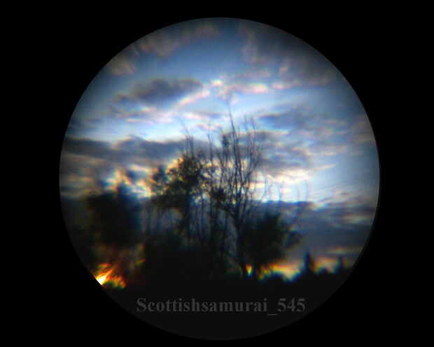 -Dependiendo de cómo usted apunte su cámara en relación con el sol, la curvatura del espectador de la puerta puede conducirlo a recoger más luz y la creación de un punto blanco que no desea enfoca la cámara y ajuste su luz balance sin el ojo de pez y luego tapa el adaptador y la lente sobre el tiro en los ajustes