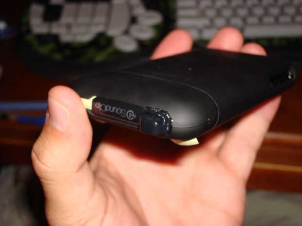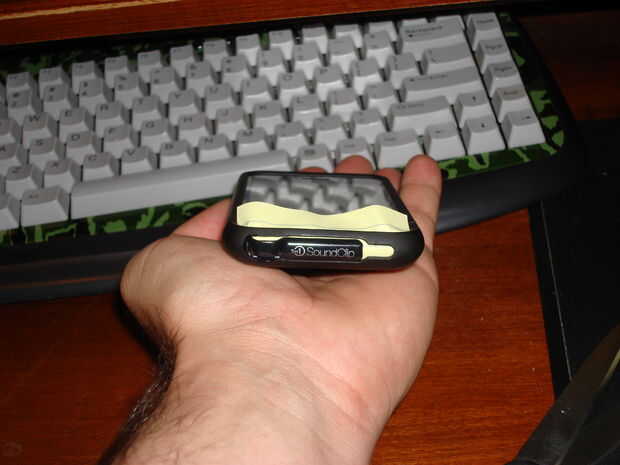 Punta Si es posible pegar sólo alrededor de la taza de la SoundClip. No me di cuenta hasta que después de él fue todo hecho, pero dejando la parte de "toma" del clip sin pegar permite que al insertar/extraer el caso de la flexión. Ahorra el daño para el iPhone o el SoundClip por el camino.