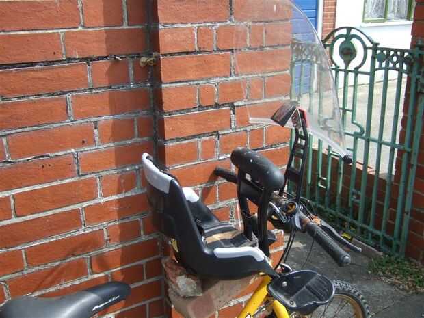 La bicicleta utilizada para estas fotos no es una bicicleta de adulto, razón por la cual el manillar y el asiento están completamente extendidos. Su actaully una bicicleta abandonded (uno de una bicicleta de carretera. debido a que la barra de soporte de manillar es una pendiente de 40 grados. Menos cuesta pondría el parabrisas inferior.