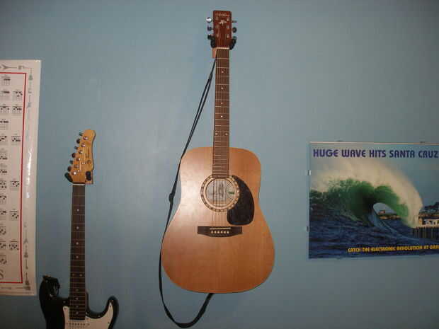 Tengo y jugar guitarras acústicas más que las eléctricas, y algunos no tienen la diversión pequeños botones que me permiten conectar una correa así puedo jugar mientras esté parado para arriba. Mientras que desplegó mi EWO amigo Jeff (siendo un chico