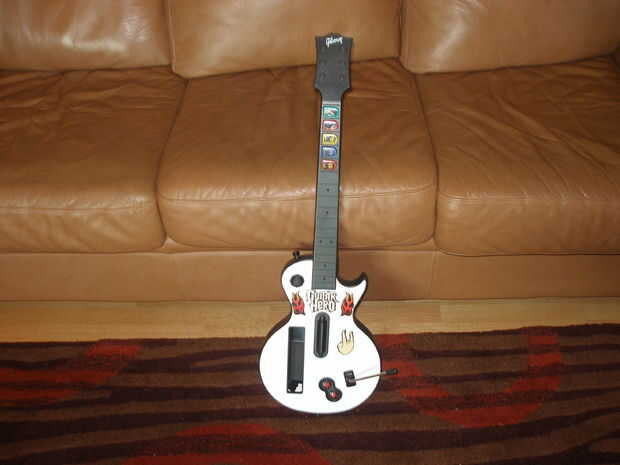 Mi novio tiene muchas guitarras, pero hasta hace poco, sin correas.Este es el prototipo de lo que una correa de guitarra sin necesidad de utilizar fijaciones de una correa previamente comprada (que encontrado común entre otras correas de guitarra DIY