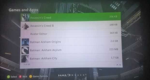 La mayoría de tu disco duro es tomada por datos de juego y de la aplicación. En esta carpeta, puede seleccionar el juego o aplicación cuyos datos desea administrar. Si usted desea seleccionar todos los datos dentro de un juego/aplicación, en lugar de seleccionar el juego (A en el controlador), pulse la tecla de Opciones del juego (Y su controlador).