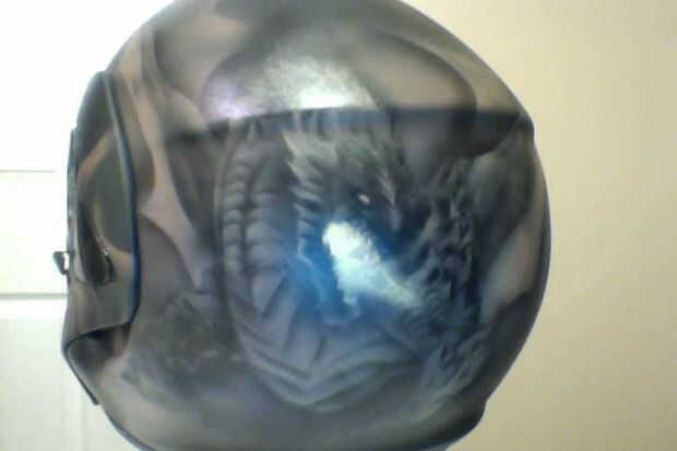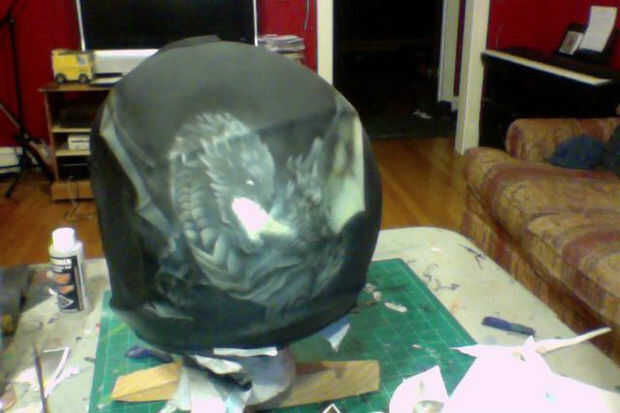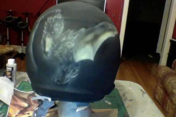 Para la fotografía, decidí probar un dragón en la parte posterior del casco