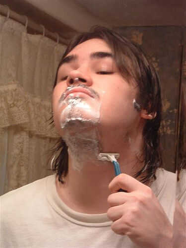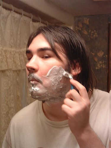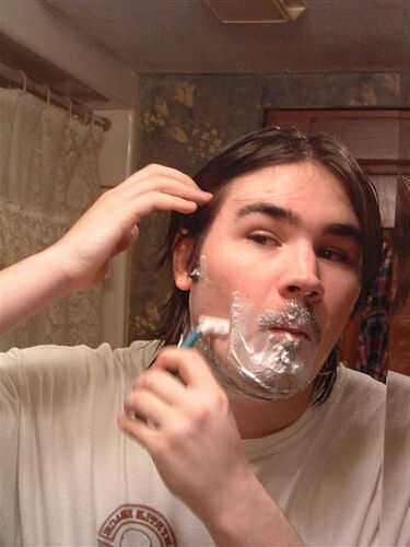 Por ahora estás probablemente cansado de escucharme parlotear, así que vamos a llegar a él. Aplique cuidadosamente la afeitadora en el lado de la cara. No importa - exactamente - donde empezar, pero tu mejilla es buena. Me gustaría empezar por mi patilla y toma bien, incluso caminos hacia abajo. Ir en la dirección de la veta del cabello, es decir, la dirección de que su mano fue a través de su cara en el paso anterior. Después de haber seguido un golpe en él, echa un vistazo a tu maquinilla de afeitar. Está obstruido ¿EH? Seguir adelante y agitan en el agua antes de cortar otro camino. Cuando haya terminado la mejilla en que estás, ir a hacer otro. Mismo trato, justo a la inversa.