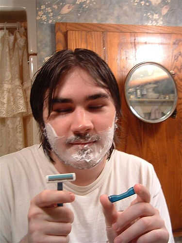 Consejo importante! Siempre, siempre, siempre mueva la afeitadora en una dirección perpendicular a las hojas. Es decir, nunca deslizar hacia los lados, siempre en el sentido de la manija. Y mantenerlo plano. Hacer esto y no debe cortarse porque no pasar un rumple raro en su cara. O cortar la parte superior de un zit. No te preocupes, que no duele, y apenas notarás.