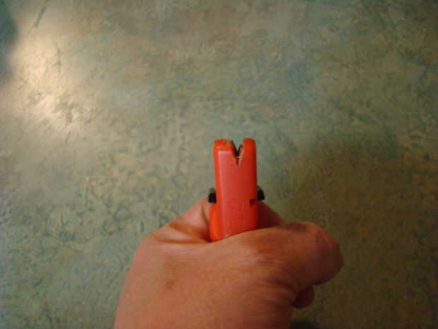Si sus cuchillos son realmente tontas primero necesitará un sacapuntas de curso get con afilado de las cuchillas formando un ángulo de 45°. Mina se parece a esto. Justo entré en una tienda un día, allí estaba, y lo compré. No podría haber sido más de $5, pero no me pregunta donde, porque era más años que cuido a pensar y mi mente siendo el tamiz es, simplemente no recuerdo.