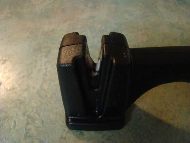 El siguiente es el afilador fino. Tengo una de acero y cerámica de la manija un poco uno. Mi estado de ánimo determinará que un uso. Tengo un grado en alimentos y he cocinado en hospitales, restaurantes, etc. así que he tenido mucha práctica con el acero. Si usted no quiere preocuparse sobre el acero, conseguir uno como este. Lo recogí en el puerto de carga a menos de $7.00. Si usted compró uno con la multa en el extremo opuesto del curso, sólo darle la vuelta y recorren su cuchillo 5 veces.