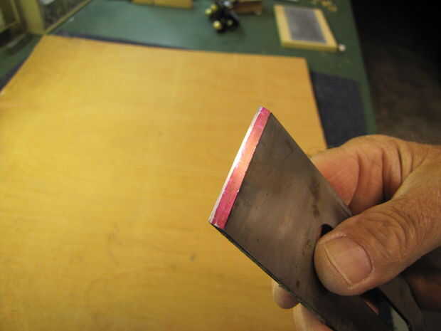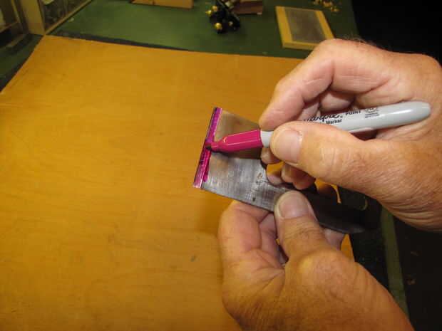 Aquí es una buena manera de "ver" su progreso. Marcar zona de bisel con un lápiz de la marca de rotulador de punta de fieltro, como en la primera foto de arriba.