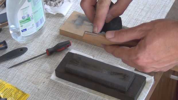 Para terminar, pulir los bordes, utilizando el perfil preparado, ahora encargado de afilar compuesto.