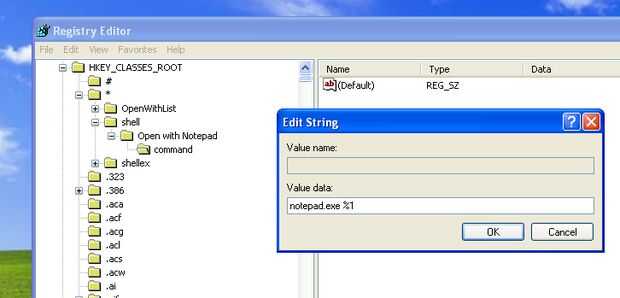Tipo en "notepad.exe %1" no hay un espacio entre "notepad.exe" y "%1"