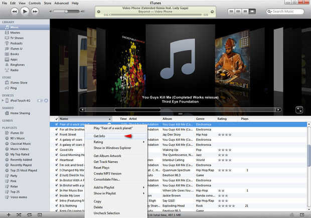 Abra iTunes y seleccione una pista (o disco) para que te gustaría agregar o cambiar la obra de arte. Luego con el botón derecho y seleccionar "Obtener información".