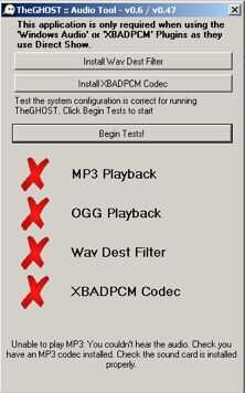 3. se escucha nada y rojo cuatro x Mostrar arriba. Curiosamente, esto es mejor que la opción dos. Probablemente, es realmente TheGhostAudioTool.exe que está mal, por lo que su mejor apuesta es seguir yendo a la parte 2. Por otro lado, si usted no puede reproducir archivos mp3, entonces tienes un problema. Ir al siguiente paso.