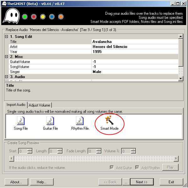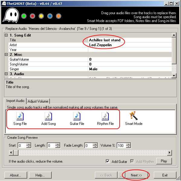 Ahora realmente podemos reemplazar las canciones que hemos seleccionado. Abrir mis documentos, carpeta de canciones del fantasma, o dondequiera que usted se preocupa en carpetas de canción de fuego se encuentran. Arrastre la carpeta de cualquier canción el icono de "Modo inteligente". Lo voy a decir importar carpeta... Podría tomar un tiempo, pero no congelar. El título y el artista va a cambiar, y los iconos de archivo .wav poco deben girar a la azul.