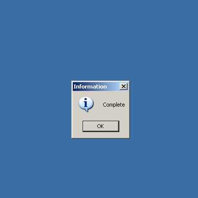 Una vez completado el proceso del paso anterior por última vez, la pantalla debe aparecer como en la imagen. Este es el último paso! Pulsa "Start" y el medidor se llena, y la zona de abajo se llena con el texto. Cuando se hace, una ventana aparecerá que dice "Completa". Golpe "OK" y luego volver a la pantalla original, presione "Salir." Digo que sí cuando se le pregunta si desea guardar el proyecto.