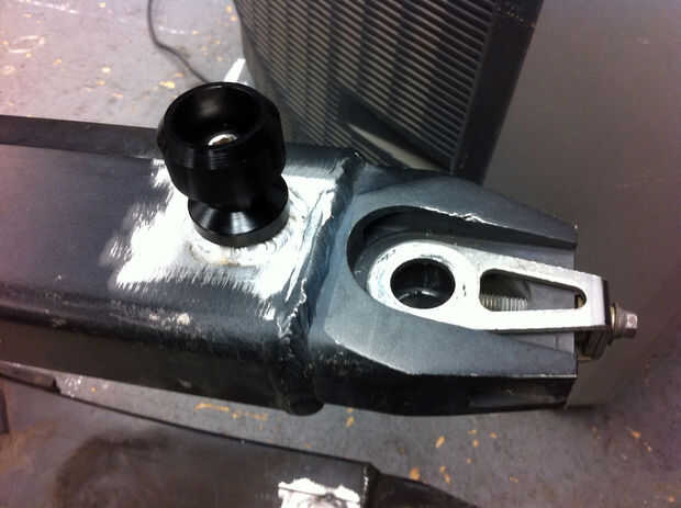 Una vez que todo se haya enfriado, puede retocar el basculante con alguna pintura en aerosol negro plano y vuelva a instalarlo. Decidí powdercoat mío en su lugar porque tienen un chorro de arena y un sistema de powdercoating en el TechShop. Salió muy bonito, pero no he pongo la moto detrás juntos todavía así que no tengo ninguna foto del producto terminado. Con las bobinas instaladas, se verá algo como la foto de arriba.
