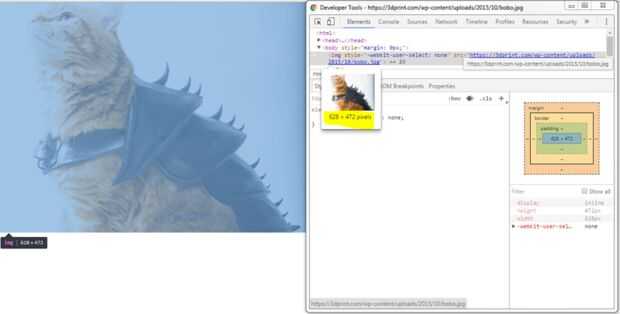 Para saber las dimensiones de la imagen de la altura y la anchura, la imagen y luego haga clic derecho sobre la imagen y seleccione examinar. La ventana de herramientas de desarrollador aparecerá a la derecha y verás algo de código. Coloca el ratón sobre el enlace que ves; Si su imagen destaca azul, este es el link de la imagen. La altura y la anchura que usted necesita están aquí.