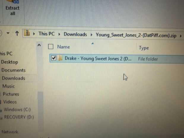 Abra la carpeta con cremallera y dentro verás la carpeta de tu mixtape. Copie la carpeta abierta.