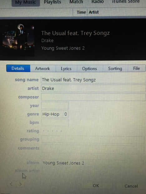 Después de hacer clic la información de get"opción, una voluntad de ficha separado iTunes pop hasta Mostrar la información. Aviso cómo todo parece en orden excepto la columna "artista del álbum" está en blanco.