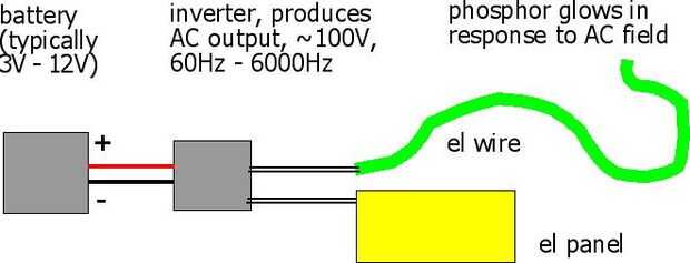 EL cable utiliza una alta corriente alterna de alta frecuencia y voltaje para activar el fósforo. Un EL conductor, también conocido como un inversor, es necesario para convertir la corriente continua de baja tensión de la batería a una toma de corriente de alto voltaje. La clasificación de la longitud del conductor EL debe corresponder a la longitud total de alambre que brilla intensamente que se desea iluminar, independientemente de si se está conectado en serie o en paralelo.