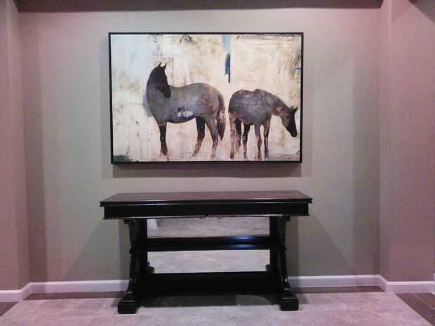 • Una pintura / arte de la pared que se adapta al menos 40% de la pared. Usted puede encontrar uno bueno por menos de $75 en casa buena o marshall o destino. Es lo que hice con esta pared. Colgué un cuadro que me gusta de un caballo.