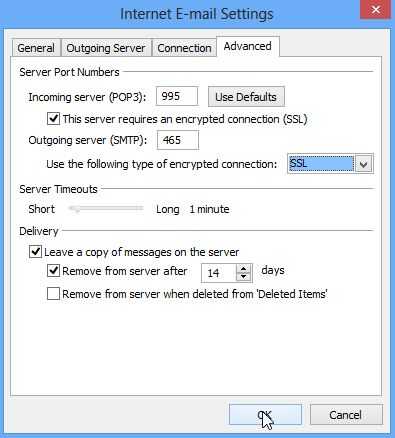 Paso 12: Mientras que en el cuadro de diálogo Configuración de correo electrónico de Internet, haga clic en la ficha avanzada entrar la siguiente información: