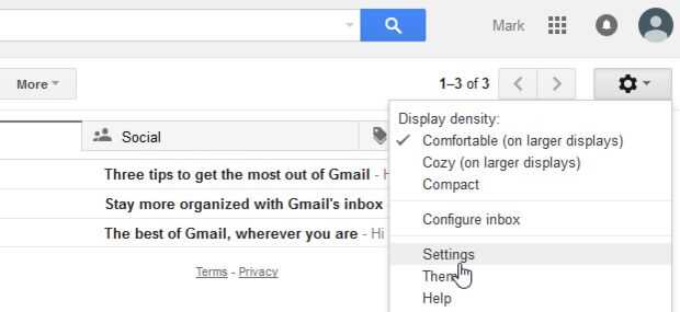 Para configurar tu cuenta de Gmail para utilizar Microsoft Outlook, iniciar sesión en tu cuenta de Gmail. Haga clic en el icono de engranaje en la esquina superior derecha de la ventana y seleccione Ajustes en el menú desplegable.