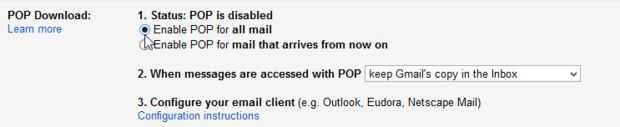 Paso 3: En POP descargar, haga clic para seleccionar habilitar POP para todos los correos.