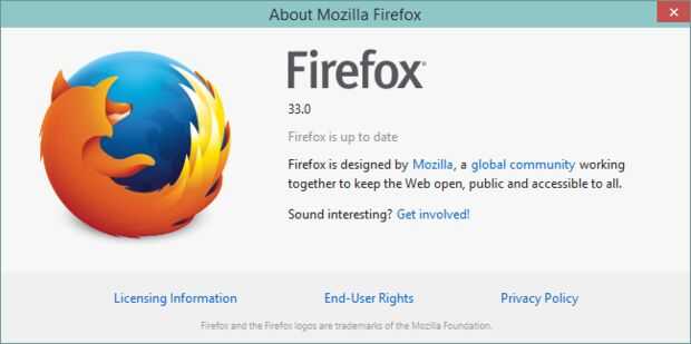 Estoy ejecutando Firefox v33.0 sin embargo estoy seguro de que esto funcionará con versiones posteriores y las versiones anteriores posiblemente.