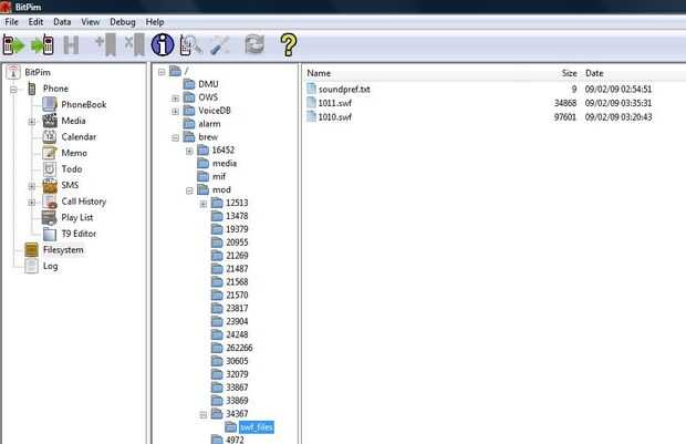 Paso 4: Localización de la carpeta .swf en BitPim