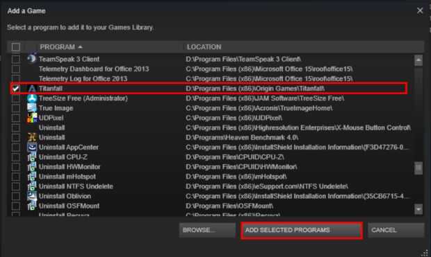 En ese pop-up, busca vapor para cada programa en su computadora. A través de ese menú y haga clic en los juegos que quieras añadir. Cuando tienes todos sus juegos, haga clic en 'agregar programas seleccionados'