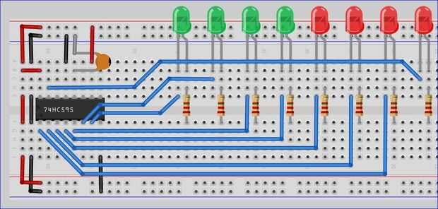 Registrar escriba es un ejemplo de programa para ampliar las salidas de Arduino usando un registro de cambio.He escribí un bosquejo sencillo que usa 3 salidas de Arduino para manejar el registro de desplazamiento.Escribí esto como no pude encontrar n
