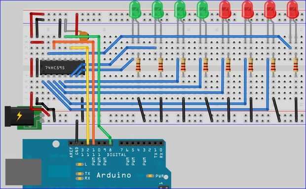 Registrar escriba es un ejemplo de programa para ampliar las salidas de Arduino usando un registro de cambio.He escribí un bosquejo sencillo que usa 3 salidas de Arduino para manejar el registro de desplazamiento.Escribí esto como no pude encontrar n