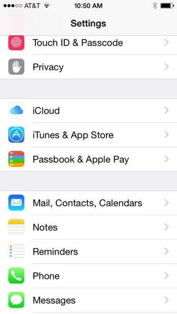 Abra su aplicación de configuración de la pantalla principal del iPhone. Desplácese hacia abajo hasta que vea "Mail, contactos, calendarios" con el icono azul a la izquierda. Puntee en la barra de iconos para entrar en esa carpeta.